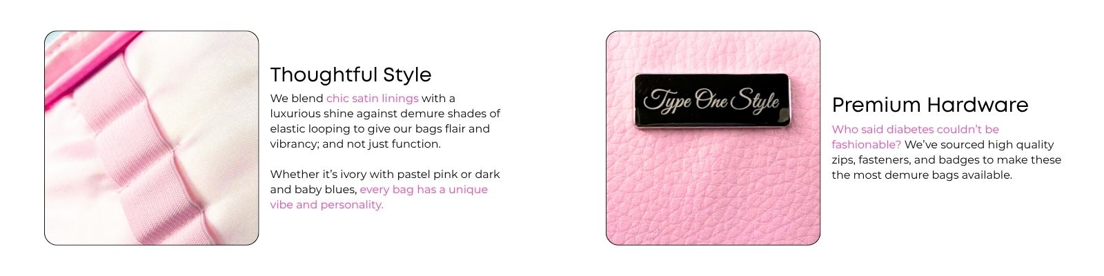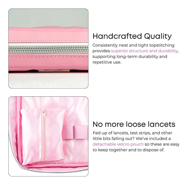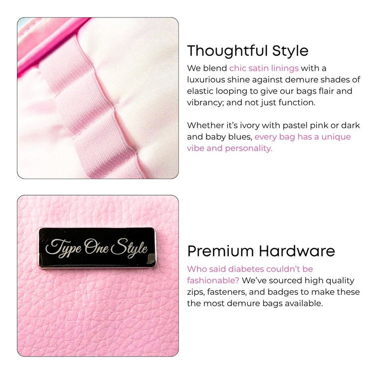 Cute Pink Luxury T1D Essentials Bag for diabetes supplies and insulin pumps