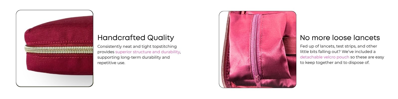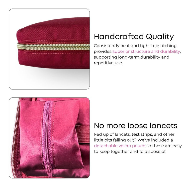 Deep Red T1D Essentials Bag for diabetes supplies and insulin pumps