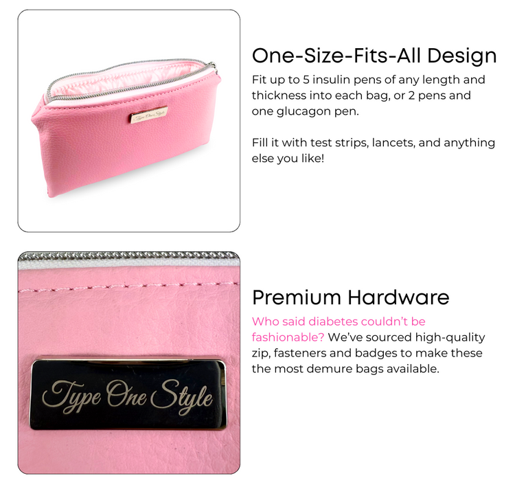 Luxury Pen Case - Cute Pink for diabetes supplies and insulin pumps