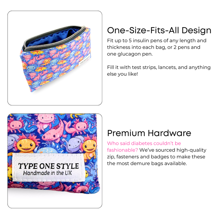 Pen Case 2 - Axolotl for diabetes supplies and insulin pumps