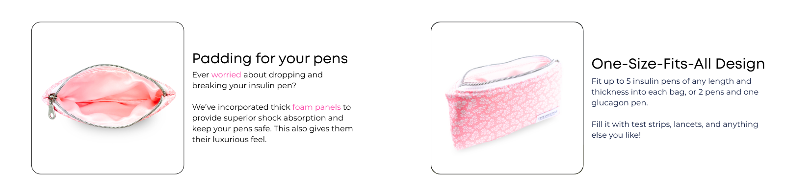 Pen Case 2 - Pretty in Pink for diabetes supplies and insulin pumps